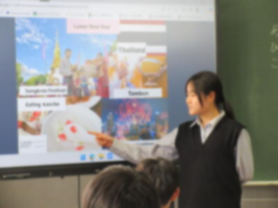 1年英語科では、世界の年末年始の習慣を調べ、スライドにまとめたものを見せながら、プレゼンテーションを行いました。