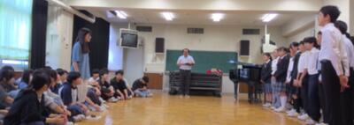 本日の音楽発表会の練習の様子です。今日も1年生が見学に来てくれました。