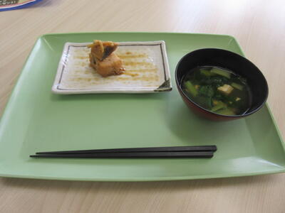 今日は3年生2クラスでタラの煮付け、小松菜と豆腐のお吸い物を作っていました。