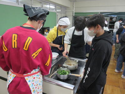一生懸命に料理を作り、おいしそうに食べている生徒たちを見て、いい学習をしているなと感じた時間でした。