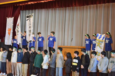 本日の学校朝会では、駅伝部が日曜日に迫った杉並区中学校対抗駅伝大会に向けた