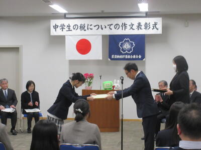 税についての作文 投稿: 管理職 (12/10) 中学生の税についての作文の表彰式に行ってきました。 本校の受賞者は1名ですが、備蓄米について自分の考えを発表して「荻窪間税会会長賞」を受賞しました。 荻窪税務署で式が行われましたが、胸を張って立派に表彰されていました。 Tweet -