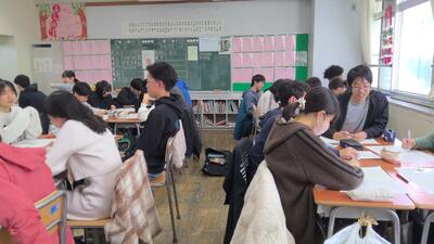 都立一般入試が終わり、3年生の教室には生徒が戻ってきました。