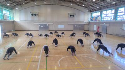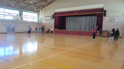 ダンスの授業です。ダンス発表会に向けて班ごとに練習中です。