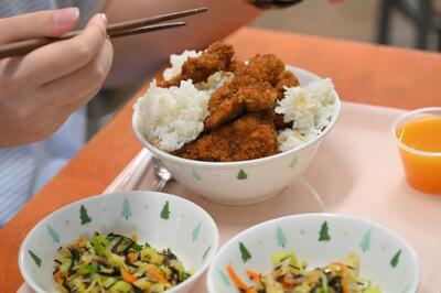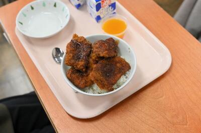 目標とする高校に合格できるように、今日の給食は3年生応援メニューでした。